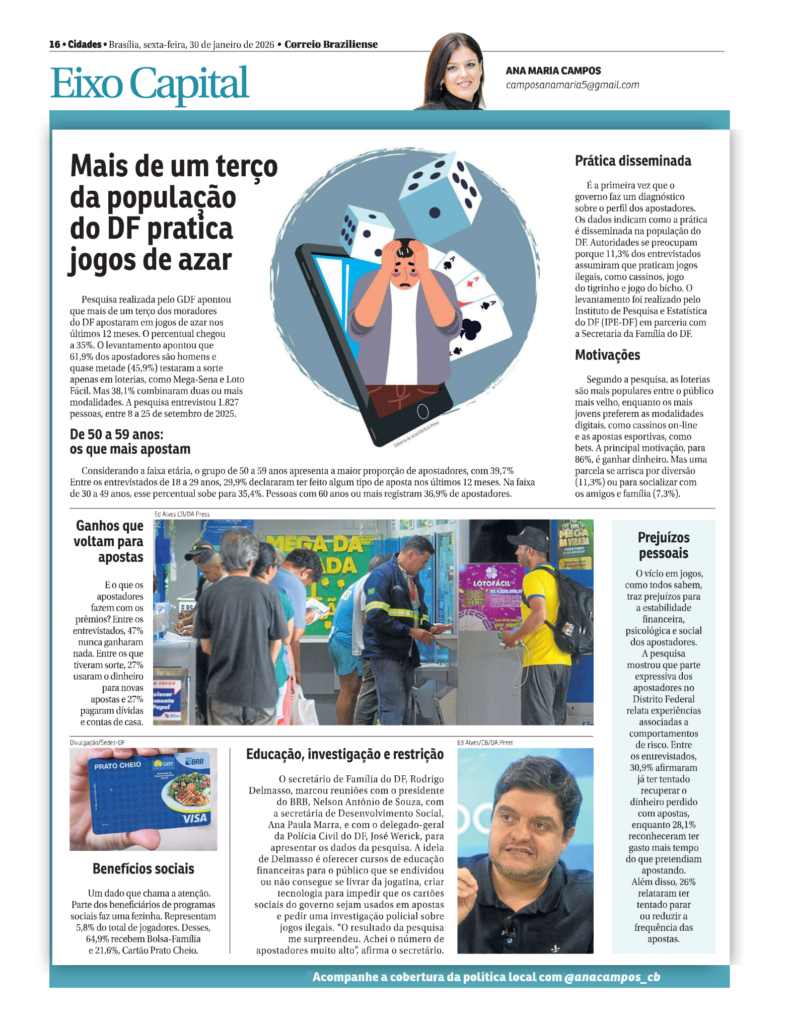 É a primeira vez que o governo faz um diagnóstico sobre o perfil dos apostadores. Os dados indicam como a prática é disseminada na população do DF.